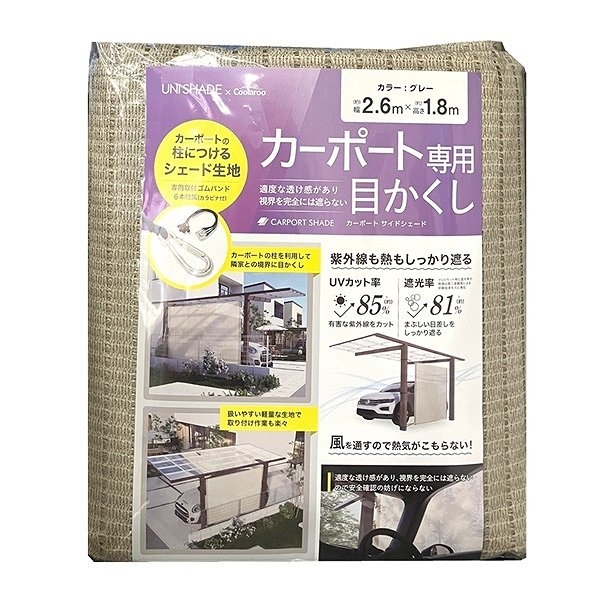 カーポート専用 目かくし カーポートサイドシェード グレー 約幅2.6×高さ1.8m