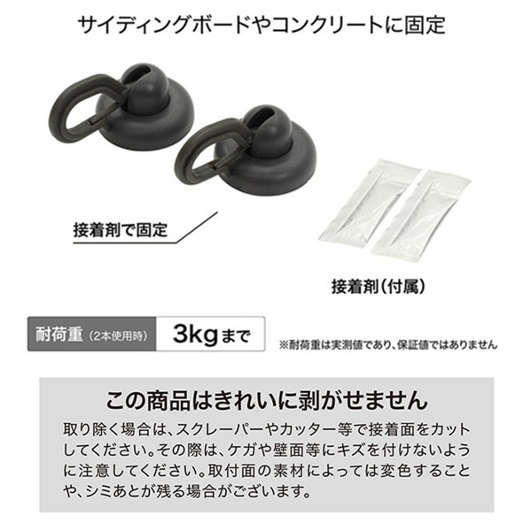 ●外壁 (金属・コンクリート) に接着剤で固定するフックです。