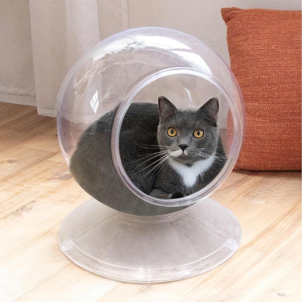 ●猫ちゃんスッポリ、横から入りやすい全面透明の球体型猫ベッドです。