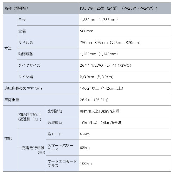 【走行距離】強モード:62km / スマートパワーモード:約68km / オートエコモードプラス:約100km