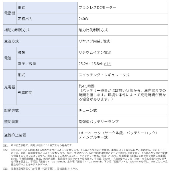 【バッテリー】容量:15.8Ah / 充電時間:4.5時間