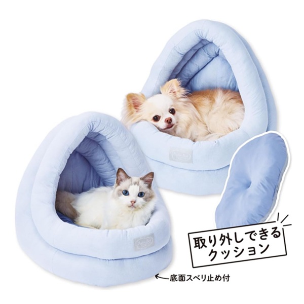 ペティオ 犬猫用ベッド ひんやりくつろぎベッド ハーフドーム アイスブルー